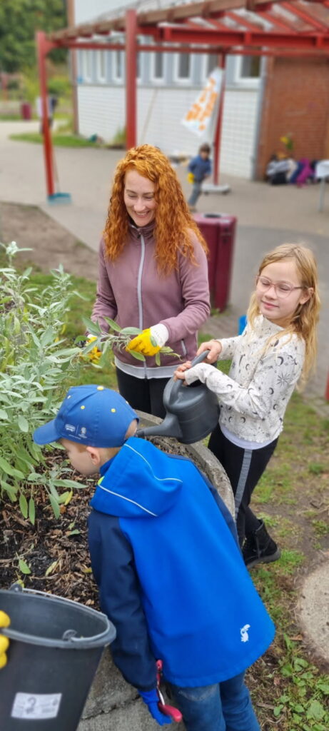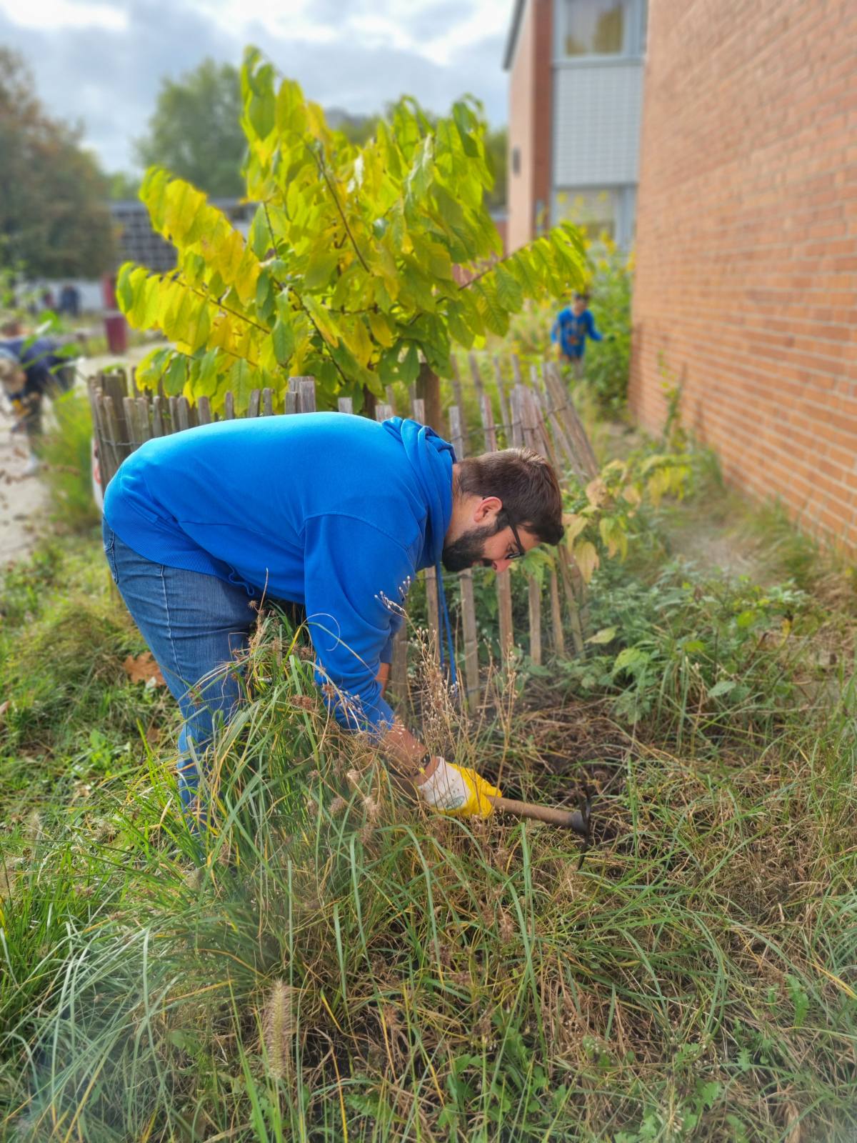 Am 11. Oktober 2025 fand wieder unser jährlicher Gartentag auf dem Schulgelände statt. Wie jedes Jahr kamen viele helfende Hände zusammen, um unser Außengelände für die kommende Jahreszeit fit zu machen. Dank des gut ausgestatteten Werkzeughängers von Rico und der Unterstützung von drei professionellen Gärtnern konnten zahlreiche Aufgaben angepackt werden.